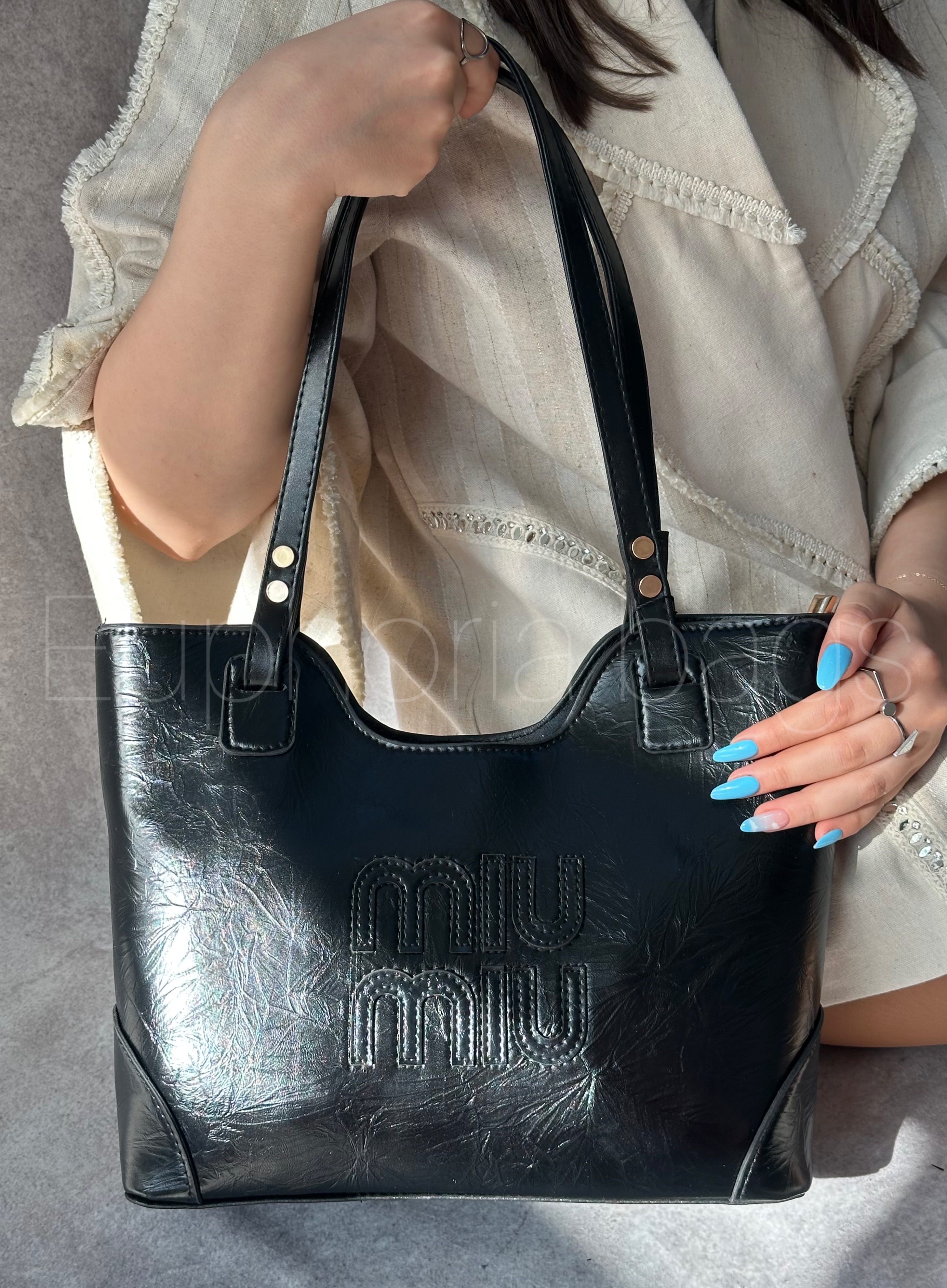 کیف زنانه دستی مشکی براق میو میو مدل مینا