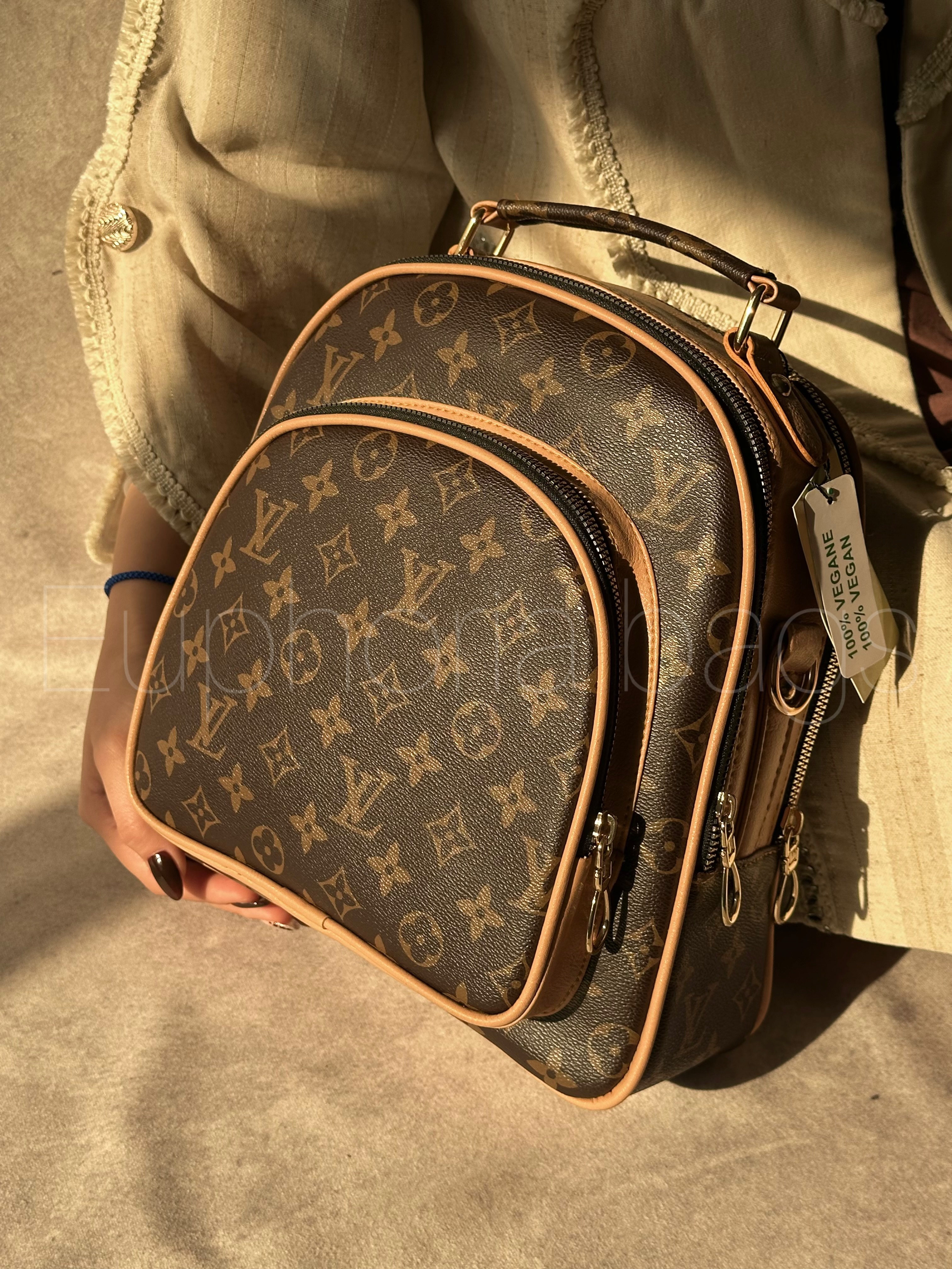 کوله پشتی یورا سه کاره چرم وارداتی مشکی و طرح لویی ویتون
